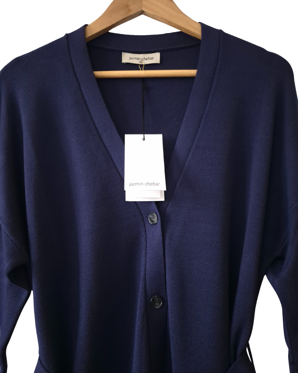 Cardigan Jazmin Chebar Oversize Zoe Azul Marino con Etiqueta T.1