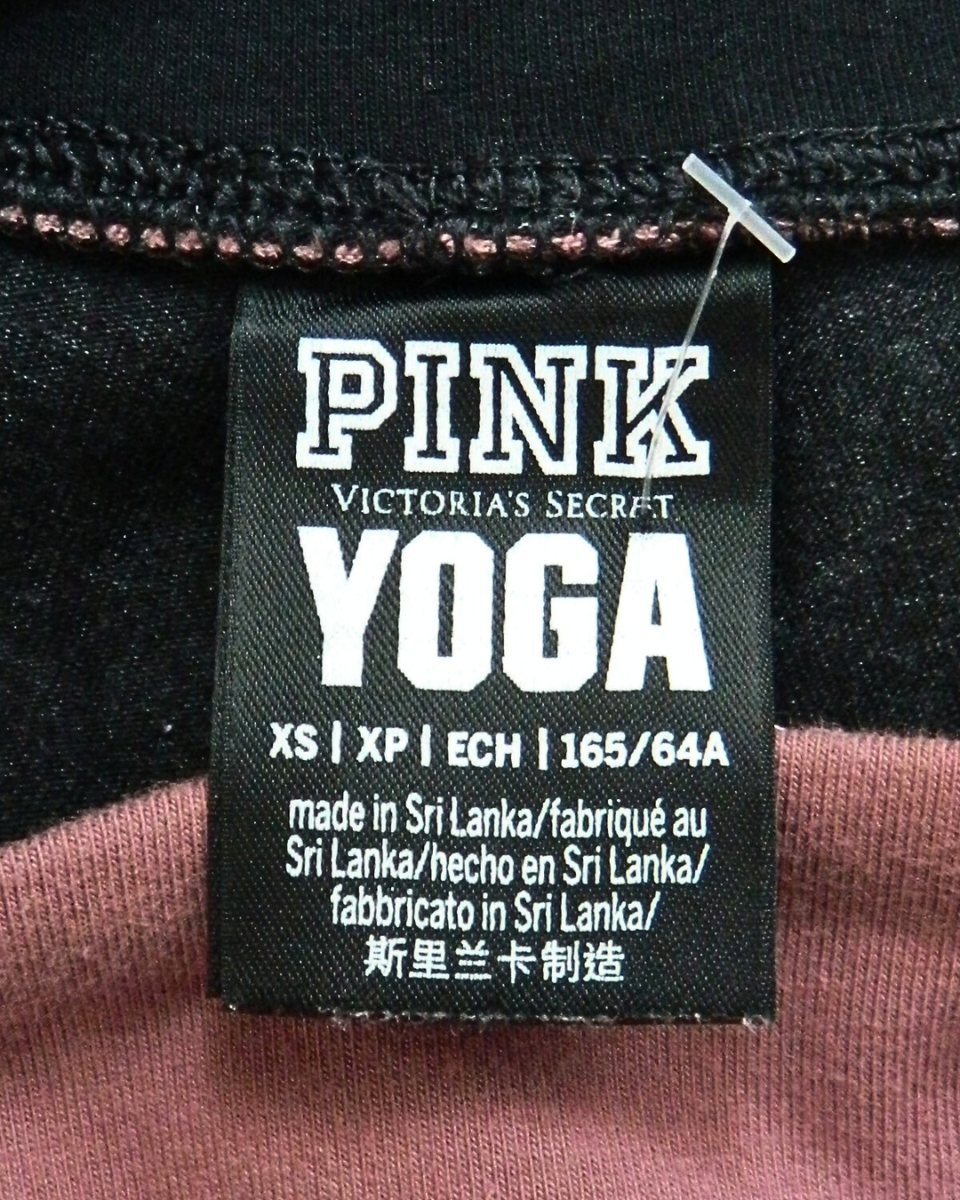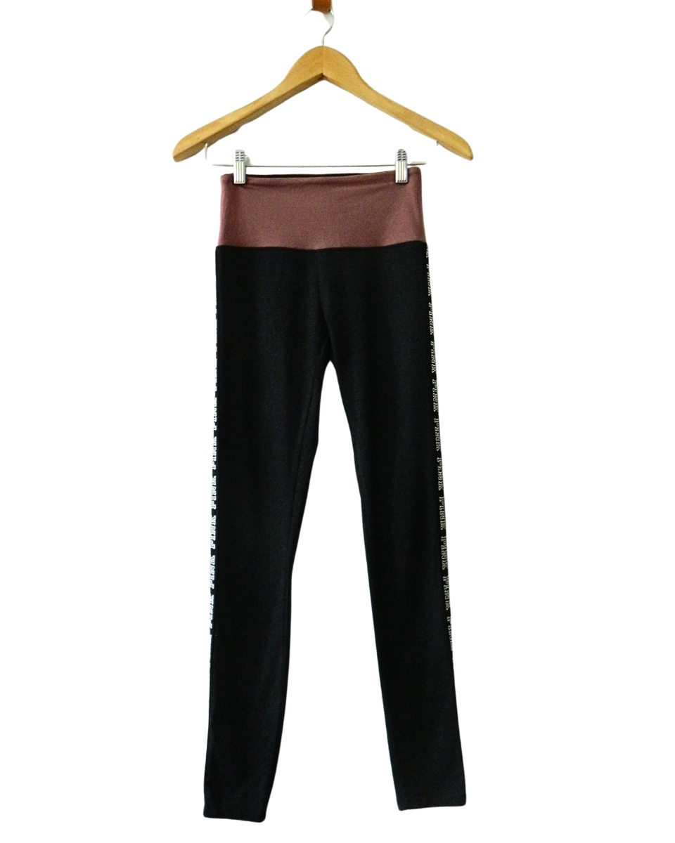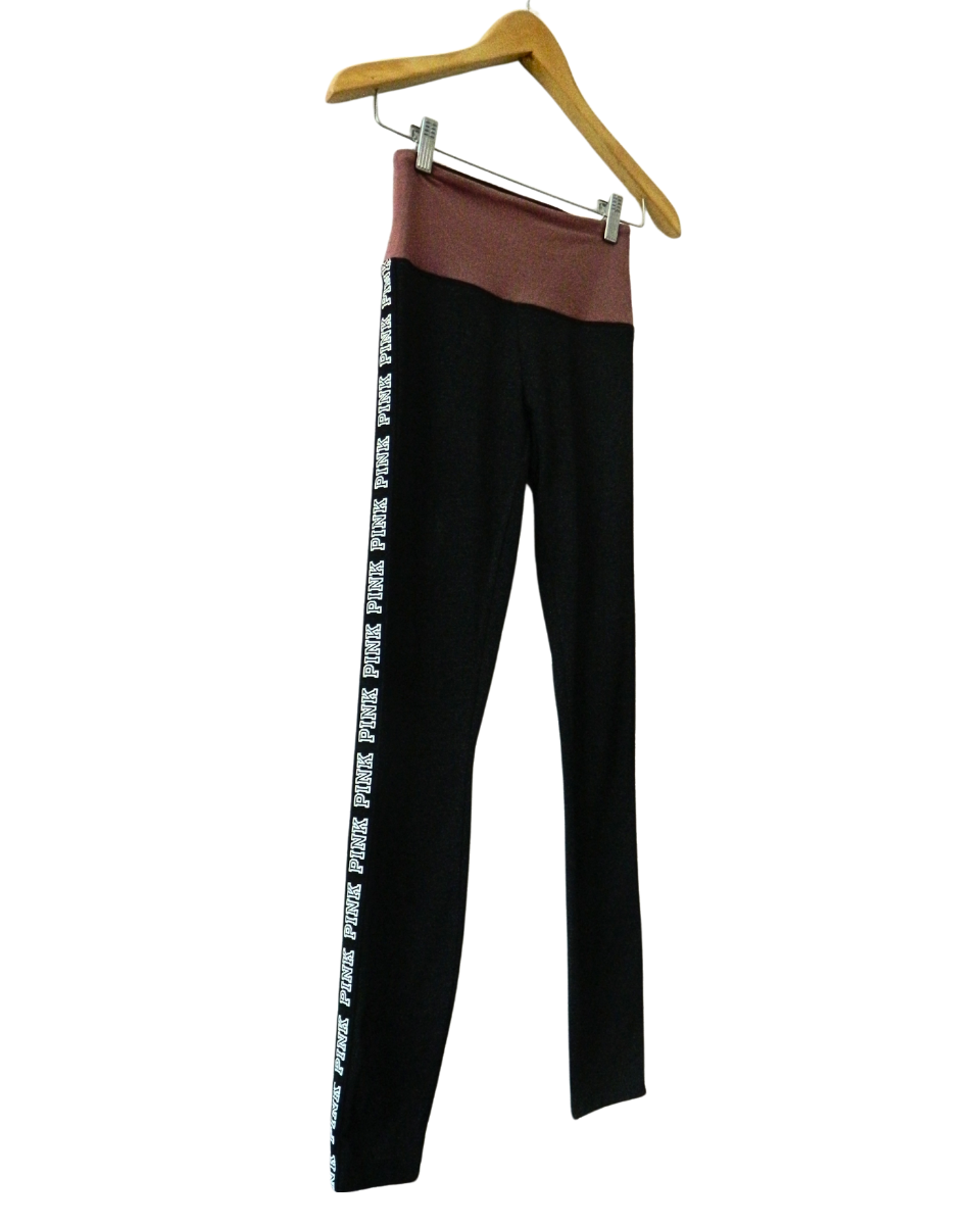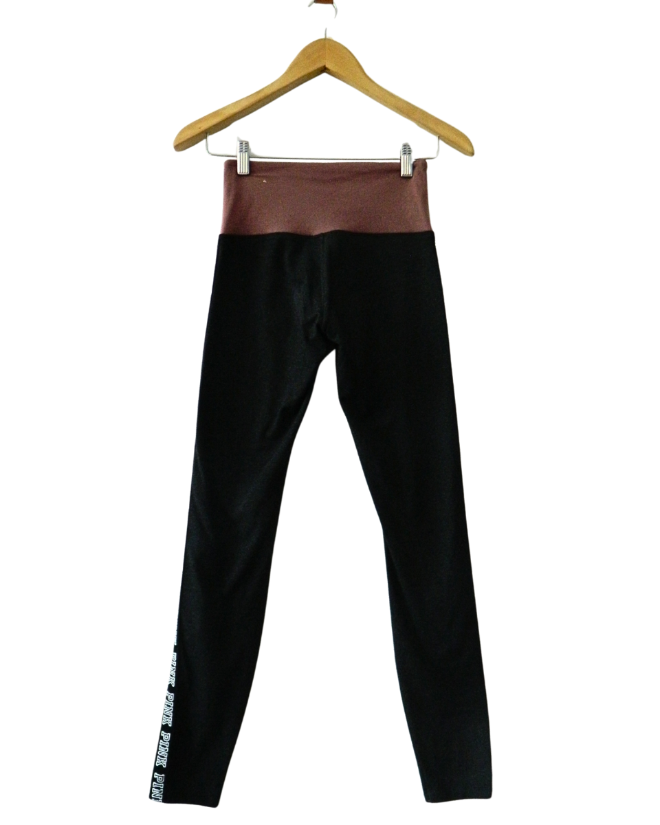 Legging Pink Yoga es un modelo de Victoria´s Secret está confeccionado en algodón en color negro con cintura ancha en color bordo claro y cintas laterales negras con estampado de letras blancas (Pink).