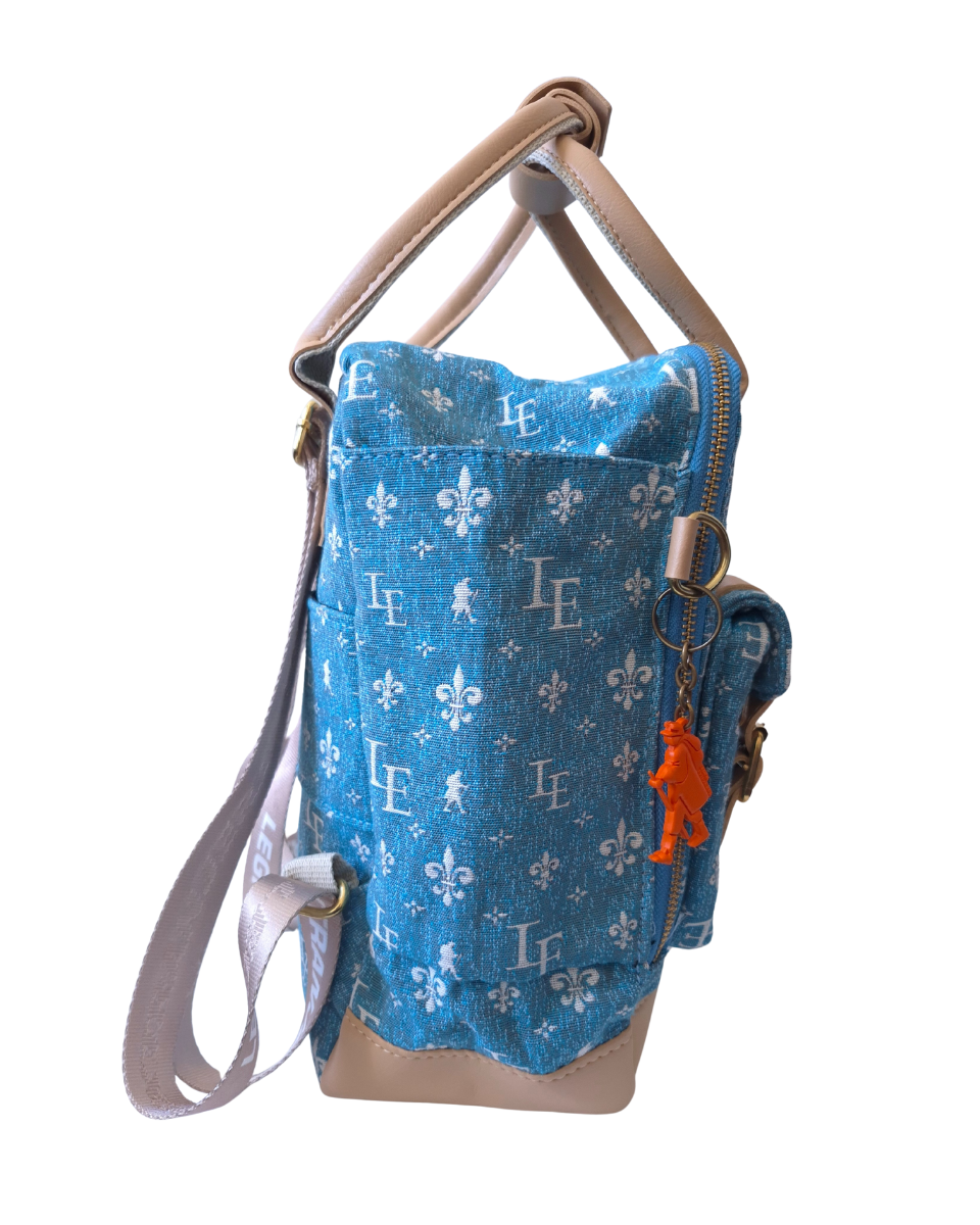 Mochila Legión Extranjera modelo Selma Petit Denim. Modelo súper chiquito y práctico para acompañarte en el día a día. Está hecha de cordura negra lisa con detalles en simil cuero canela. Tiene hombreras de cinta regulable. En la espalda lleva faja travel, para poder enganchar en el carry on. Posee un bolsillo en cada lateral. En el interior tiene un bolsillo de red, y un mosquetón para poder enganchar las llaves.