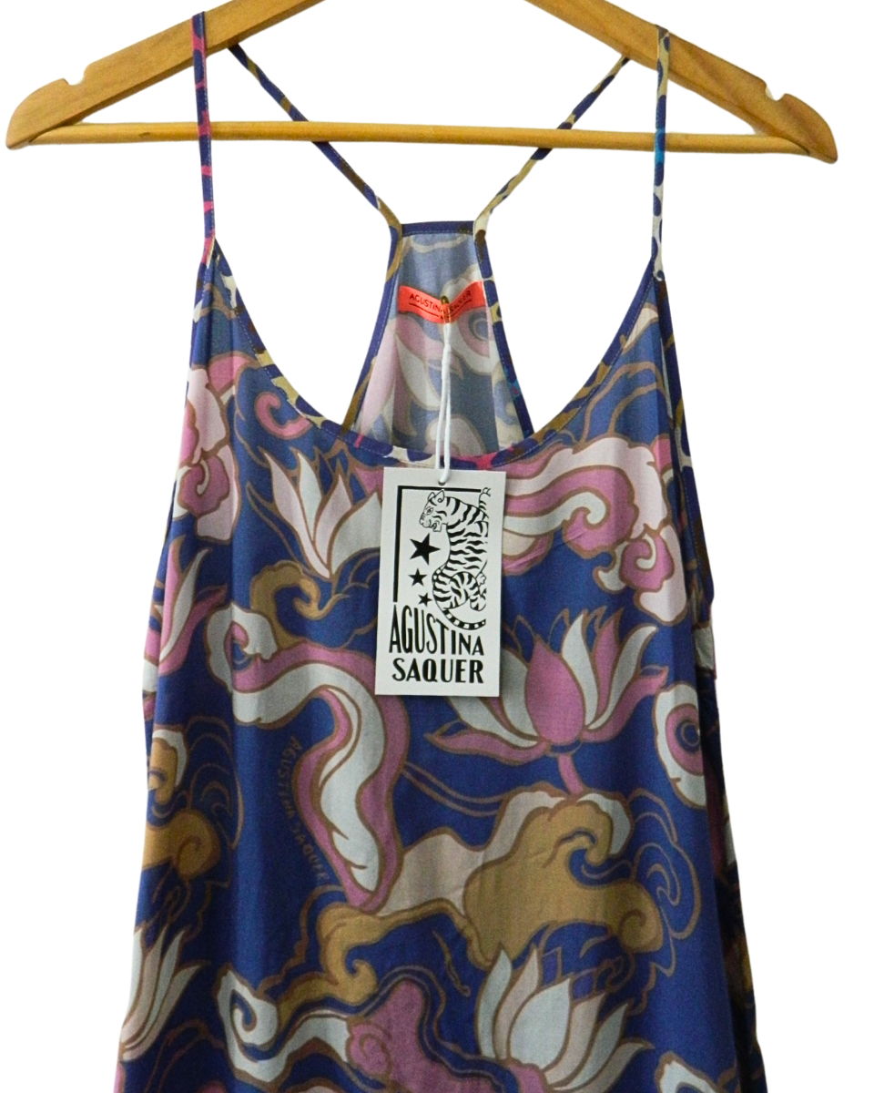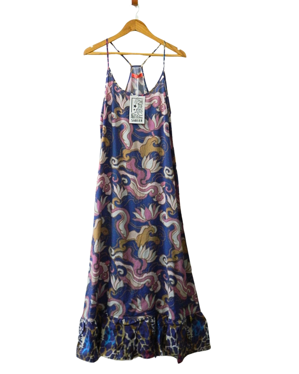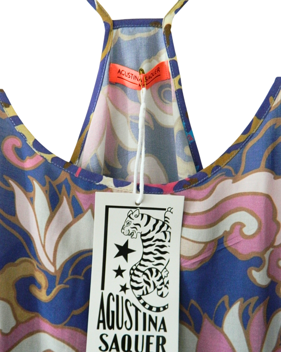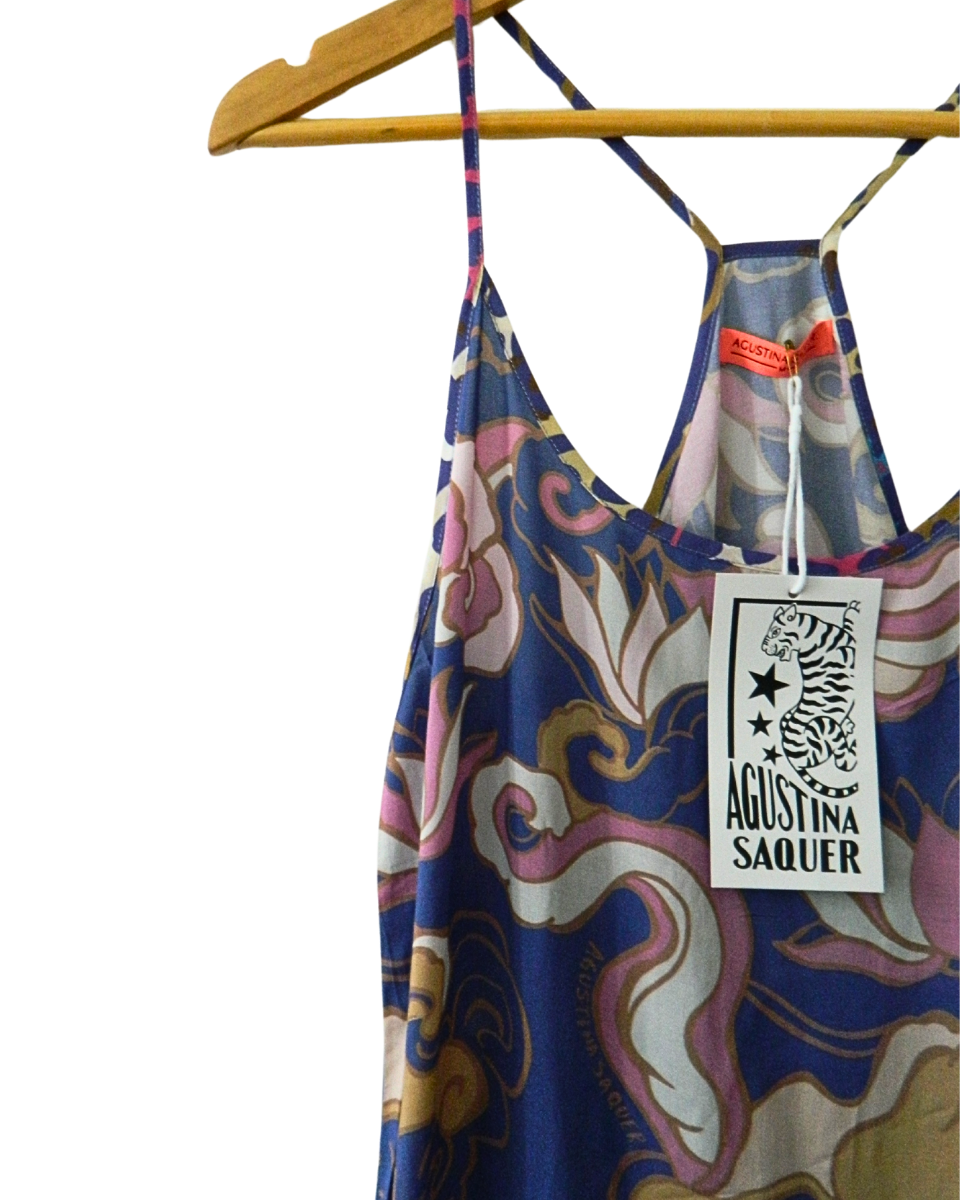 Vestido Agustina Saquer Luxor Azul Estampado con Etiqueta (800-065)