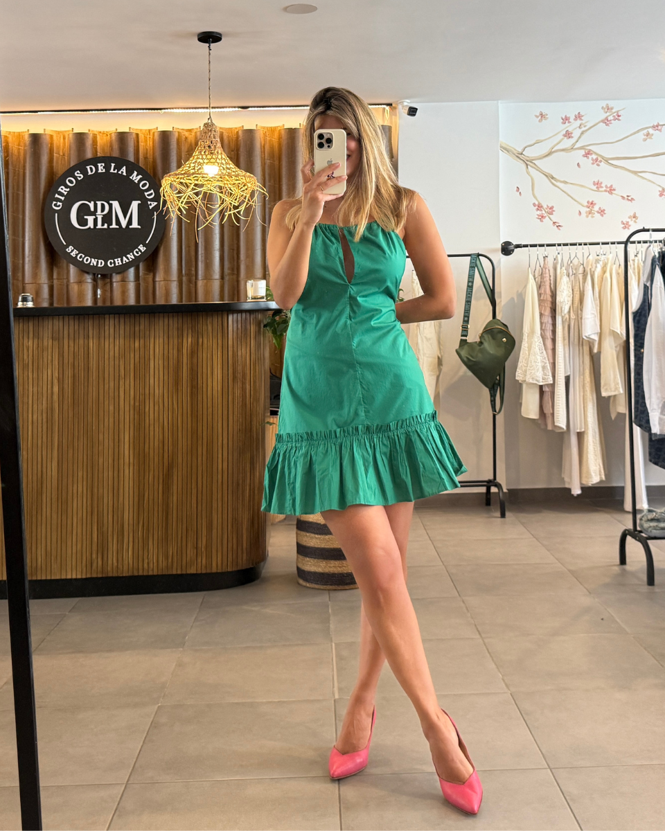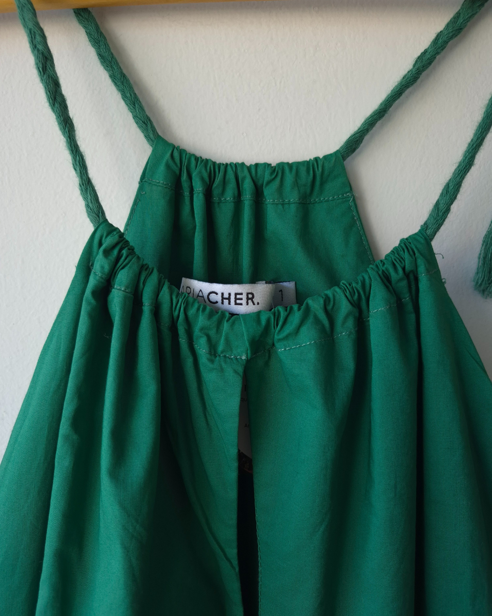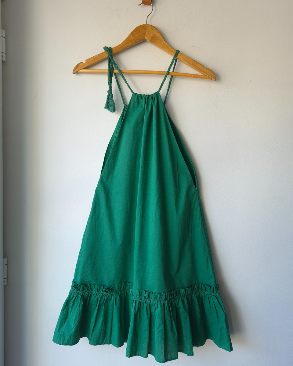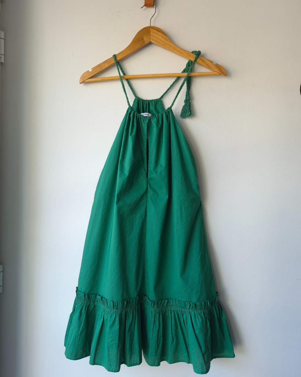 Vestido María Cher modelo Langosta. Vestido corto de voile liso. Volado en ruedo y detalle de breteles trenzados que se cruzan en la espalda y se atan. Forrado en su interior. Es una prenda imprescindible por su comodidad, frescura y estilo versátil, ideal para múltiples ocasiones.